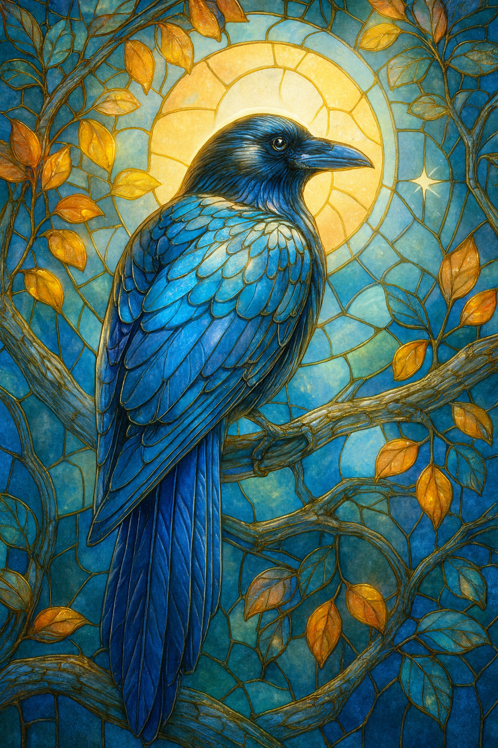 Stained Glass Midnight Raven